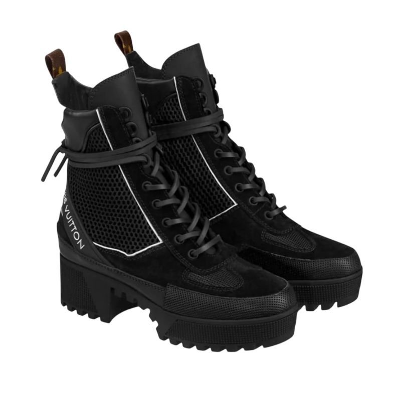 Louis Vuitton Black Suede, Mesh And Leather Laureate Platform Desert Ankle Boots